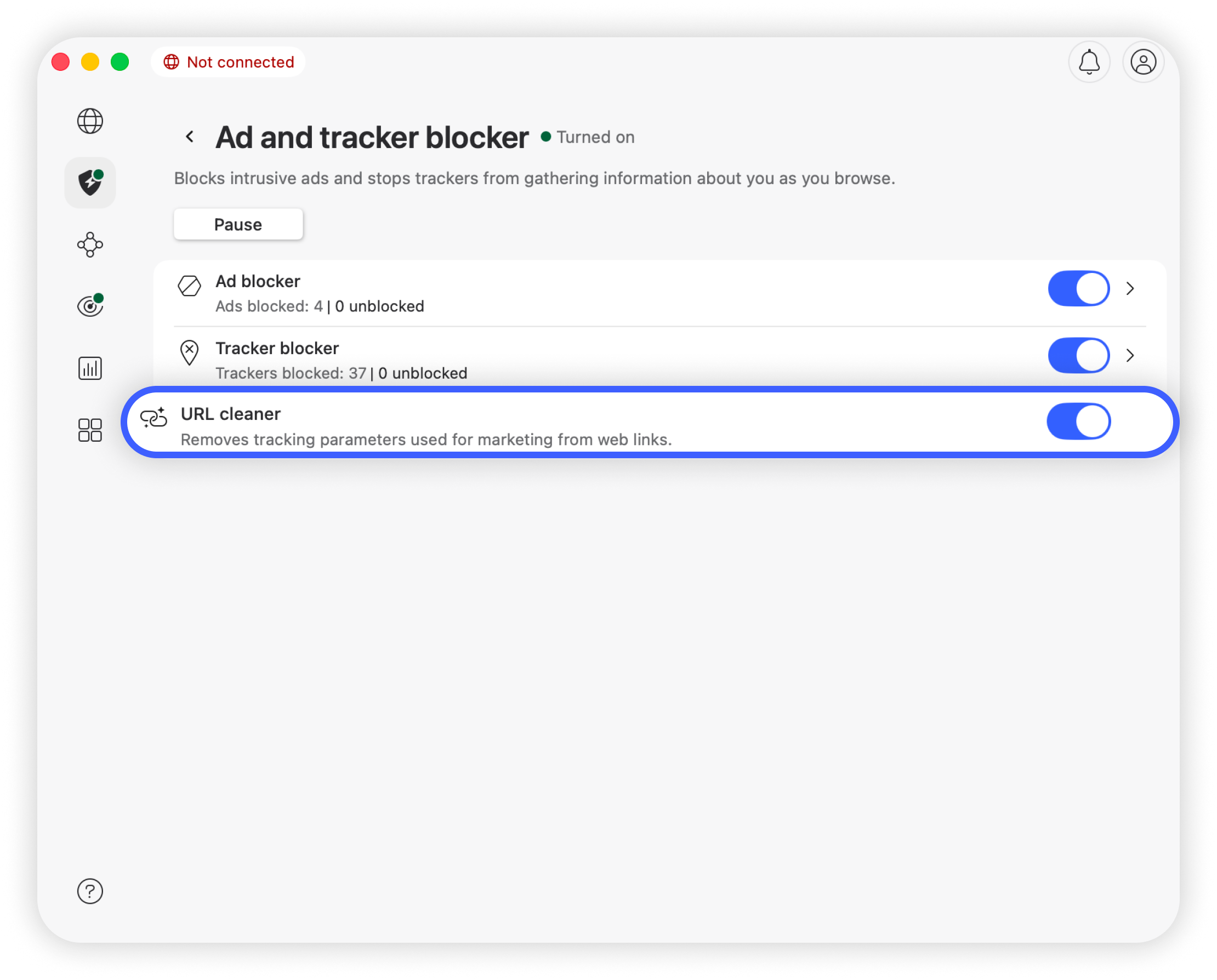- Activa «URL cleaner» haciendo clic en el interruptor.