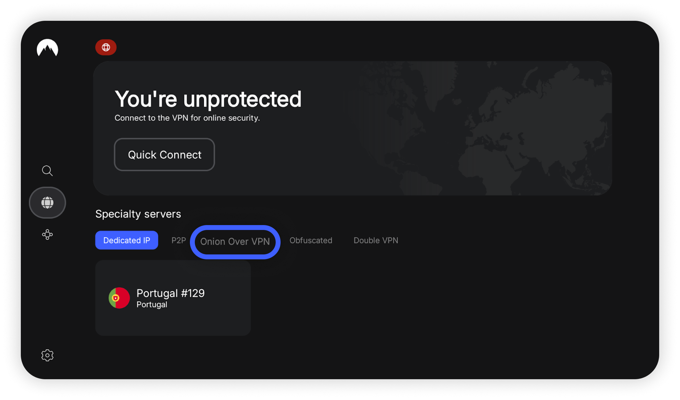 Onion Over VPN est une catégorie spéciale de serveurs NordVPN qui permet aux utilisateurs d’accéder au réseau Tor (The Onion Router) avec une confidentialité accrue et sans avoir besoin d’un navigateur Tor séparé.