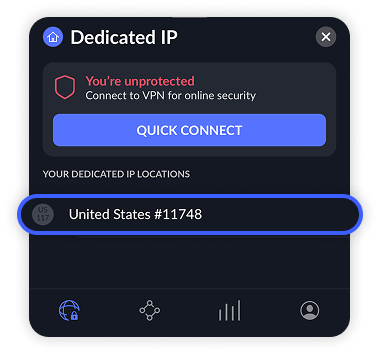 - Appuyez sur votre IP dédiée pour vous connecter :