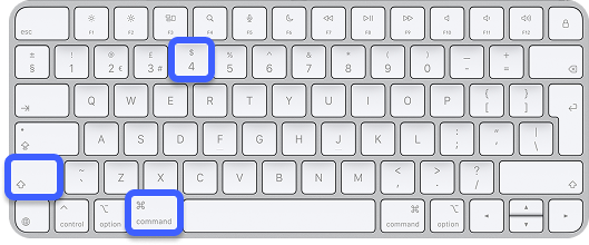 - Appuyez sur « Maj + Commande (⌘) + 4 ». Le pointeur se transforme en appareil photo.