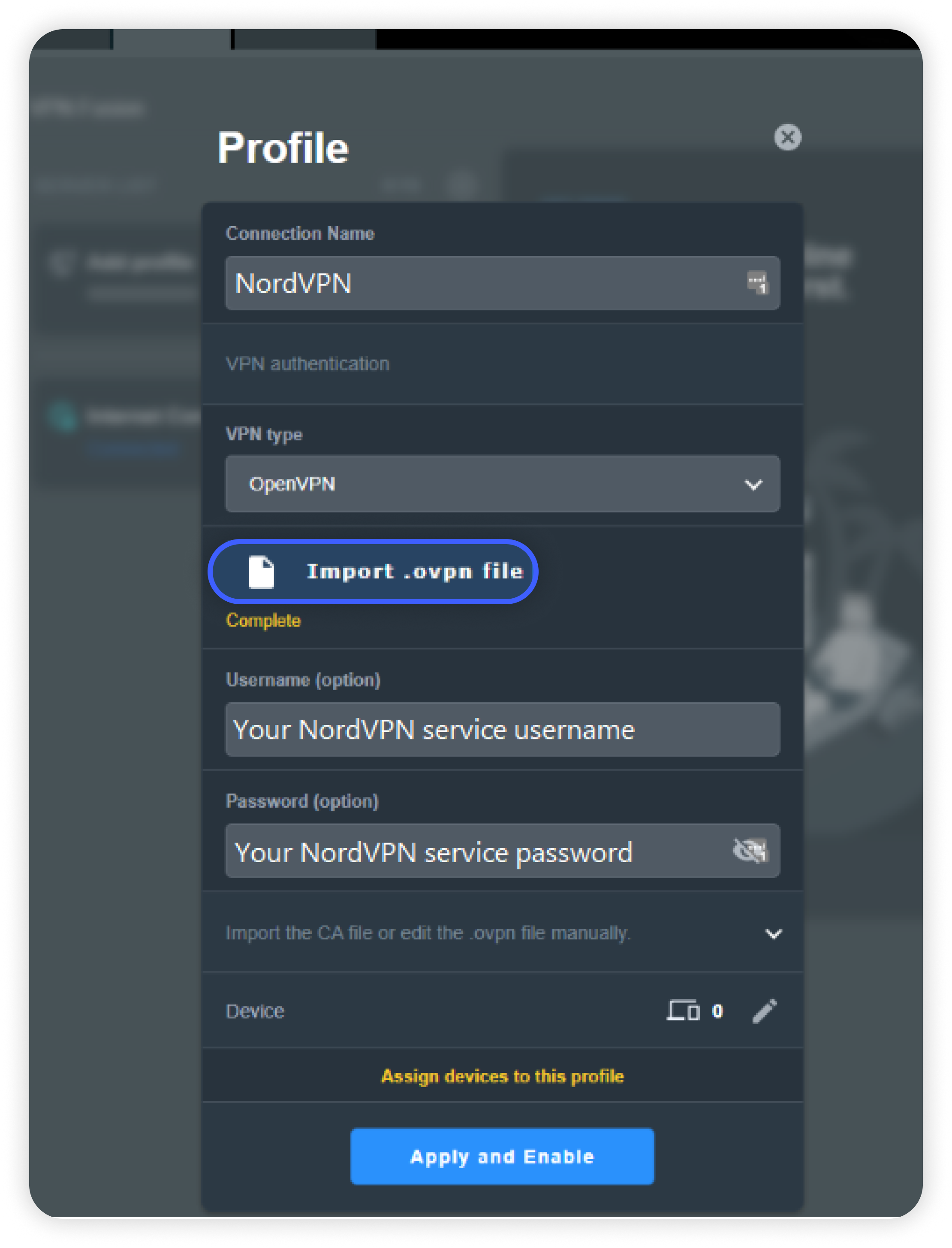 Importer .ovpn », sélectionnez les appareils que vous souhaitez