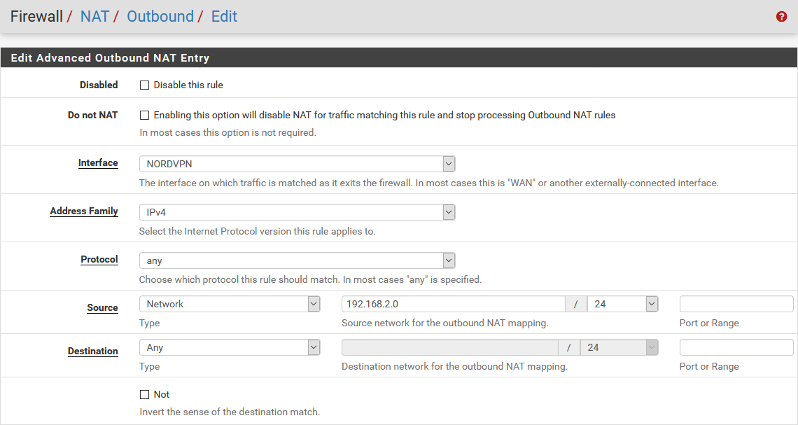 Outgoing Network Interfaces : NordVPN