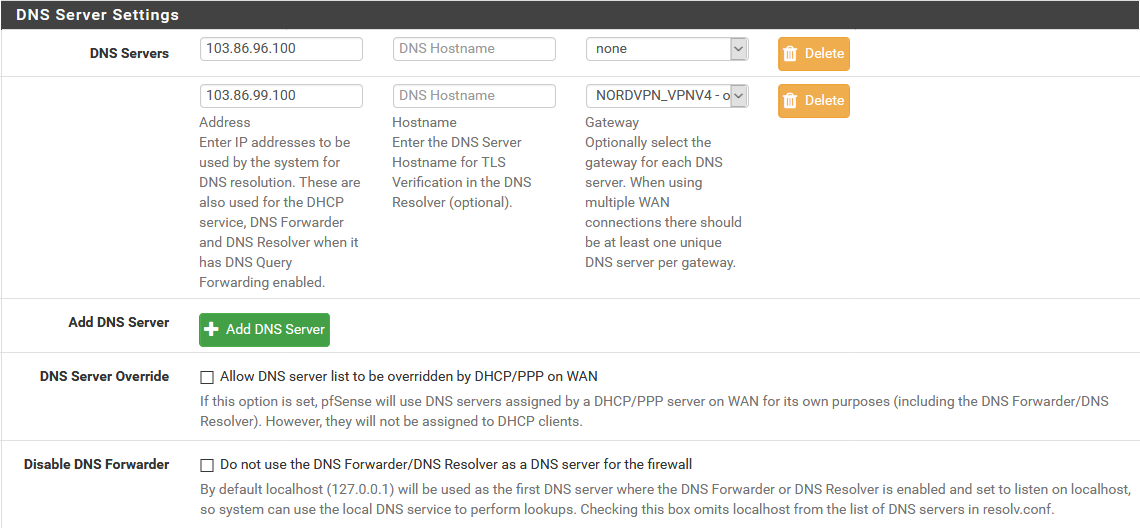 Serveur DNS 2 : 103.86.99.100.100 ; NordVPN_VPNV4 - opt1 - ...