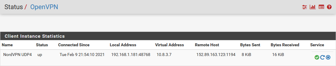 12. Naviguez maintenant vers Status > OpenVPN. Le statut doit indiquer que le service est « up ».