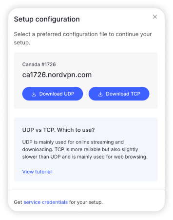 Utilisez les fichiers de configuration téléchargés depuis le tableau de bord des IP dédiées et passez à la configuration des identifiants de service sur ces prochains guides :