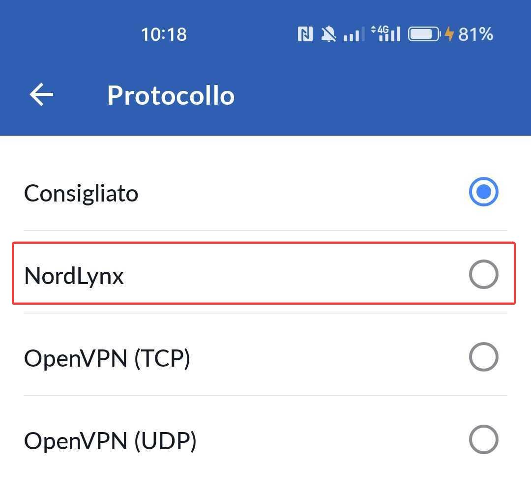 Selezioni NordLynx e connettiti alla VPN