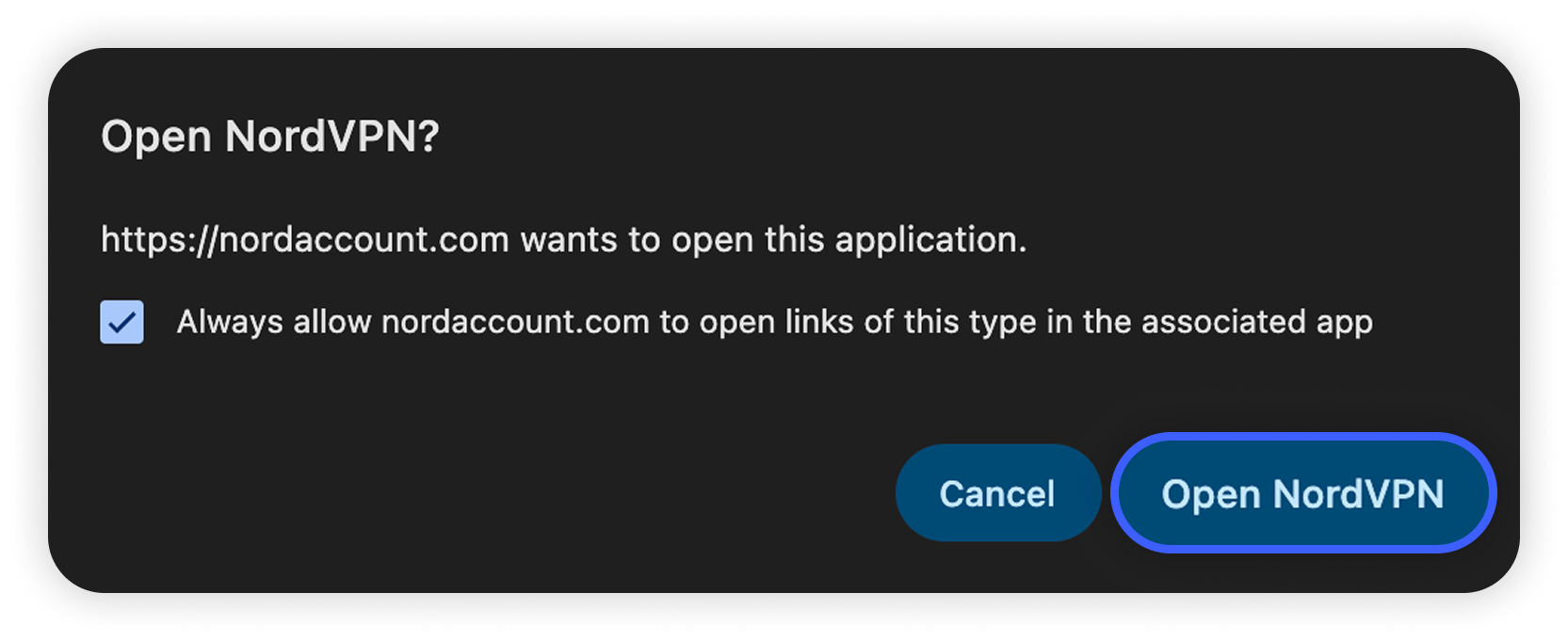 aprire l'app NordVPN. Accetta di autorizzare sempre il