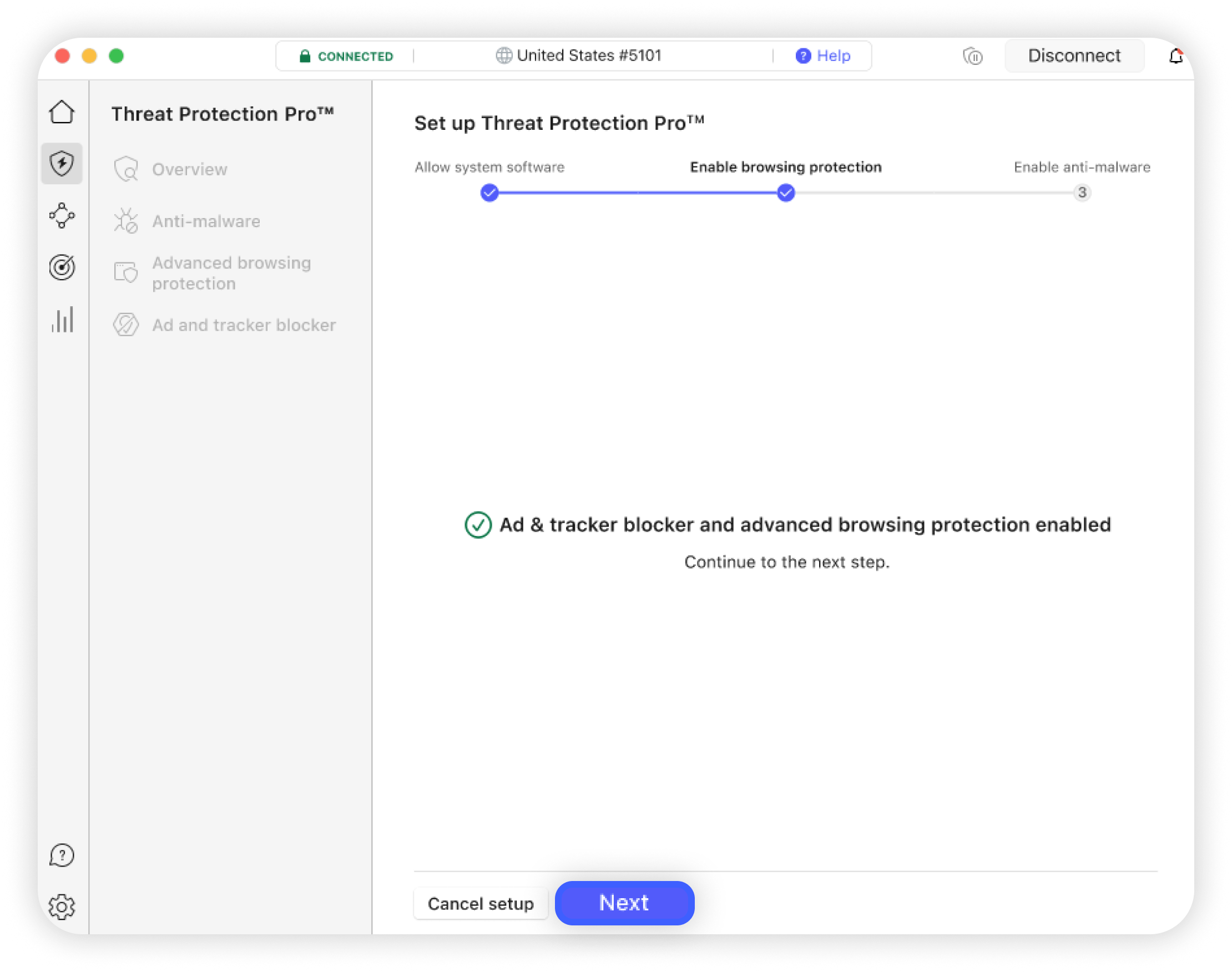 Ecco fatto: hai completato la configurazione di Threat Protection Pro™ di NordVPN sul tuo dispositivo macOS Monterey.