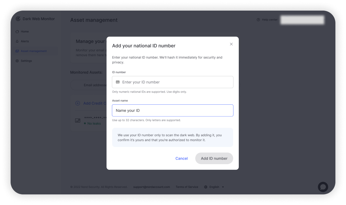 - NordVPNアプリまたはNordアカウントのダークウェブモニタリングページから「個人情報資産の管理」に移動します。