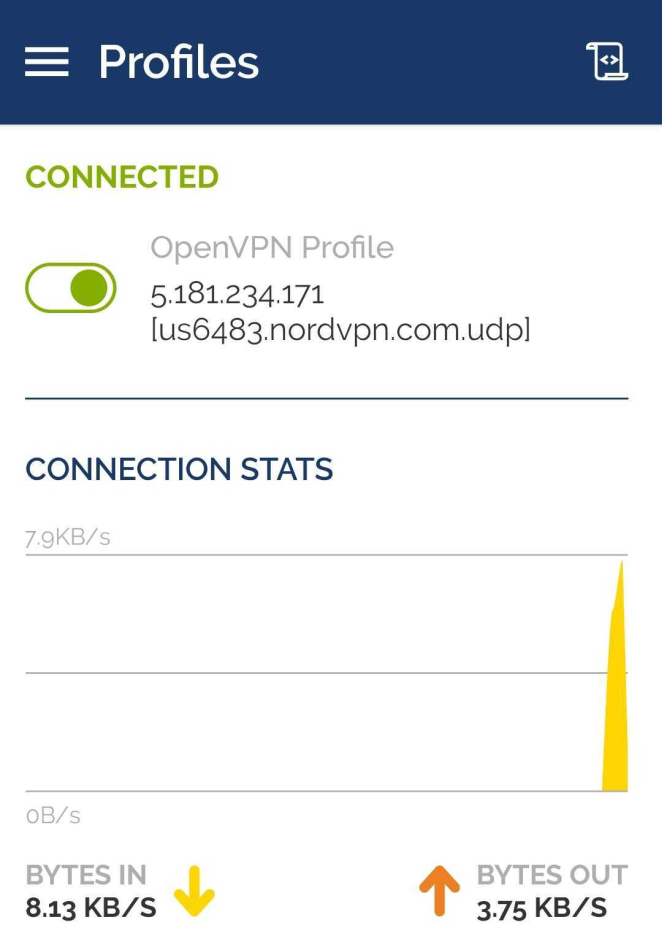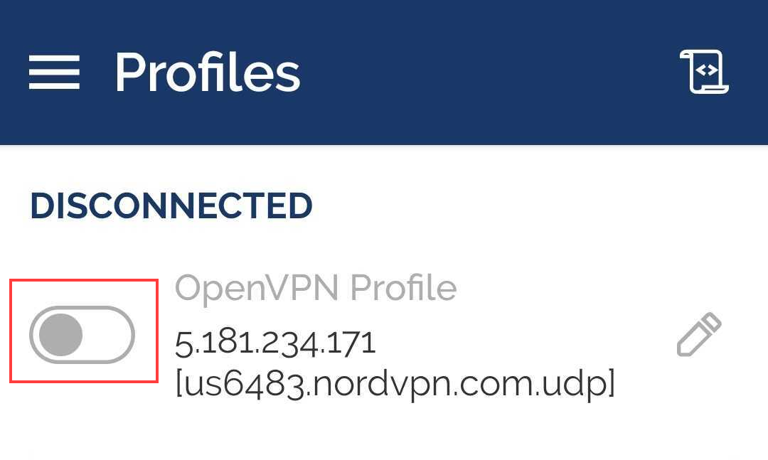 接続の設定に成功したら、OpenVPNプロファイルの横にあるトグルスイッチをタップして、接続を開始します。