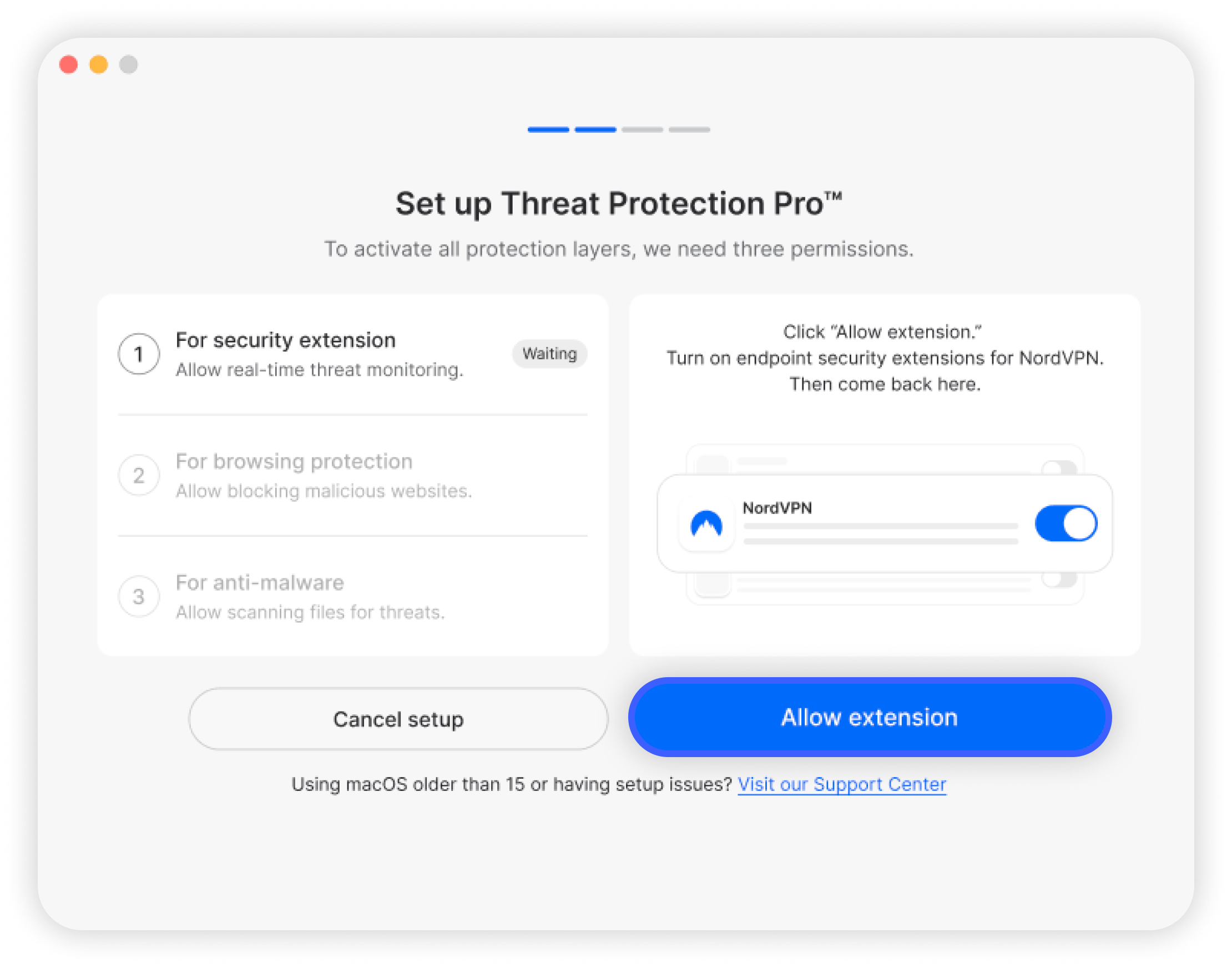 - macOSでNordVPNの脅威対策Pro™機能に問題が発生した場合は、トラブルシューティングに関するガイドをご覧ください。
