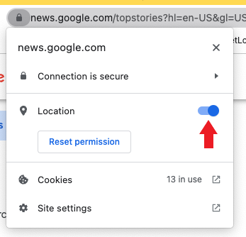 ブラウザが現在地を検出できる主な理由の1つは、特定のウェブサイトと現在地を共有するよう求めるブラウザのポップアップによるものです。