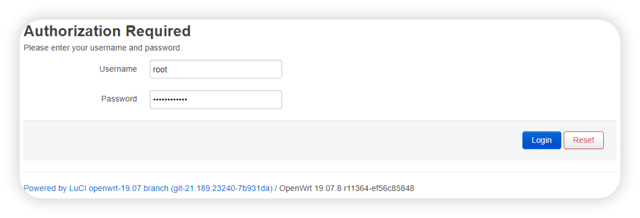 インターネットブラウザにローカルIPアドレスを入力してログインし、お使いのOpenWrtルーターのLuCIインターフェイスにアクセスします。