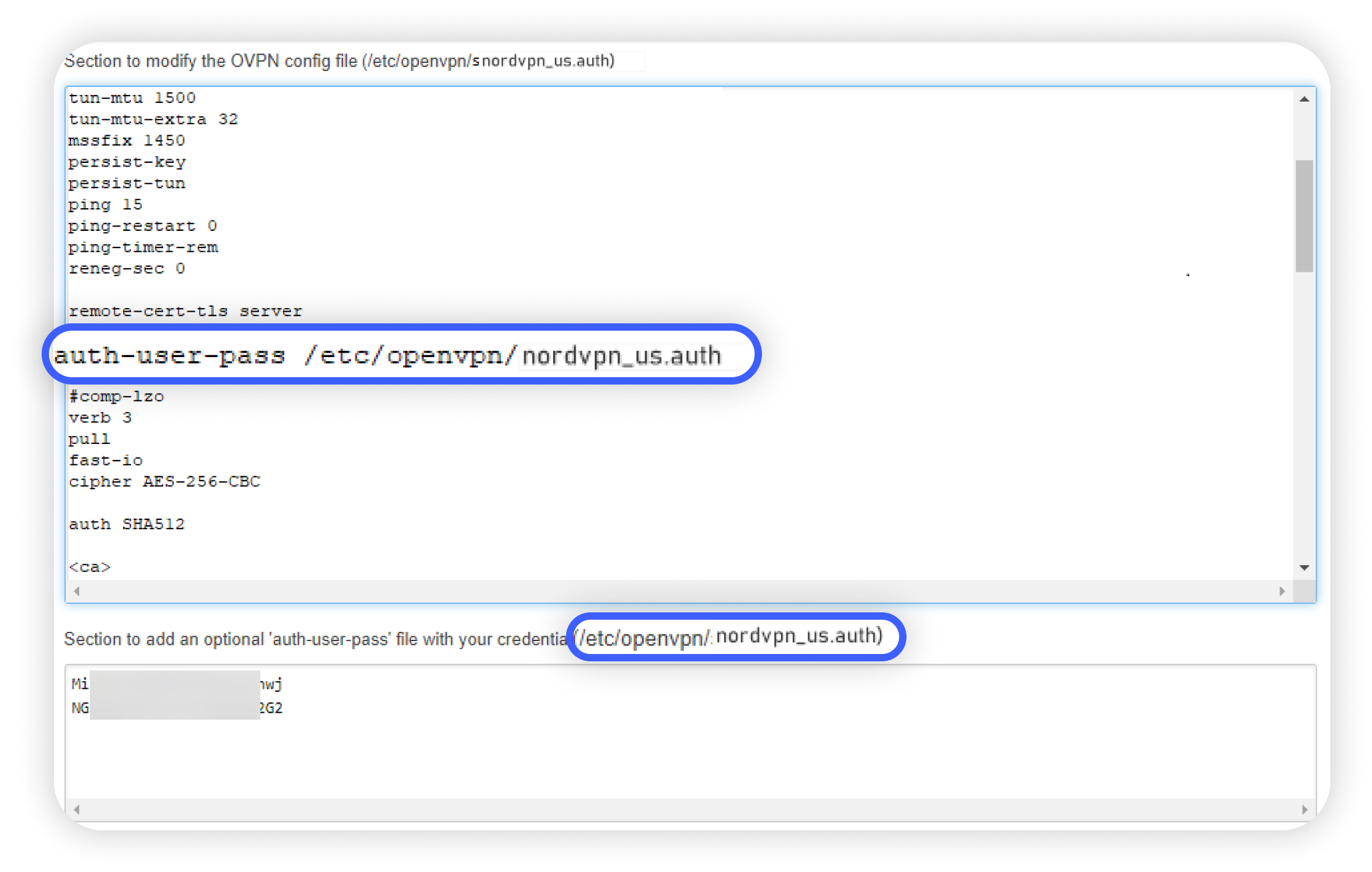 ペースト後は次のような行になります:auth-user-pass /etc/openvpn/nordvpn_us.auth