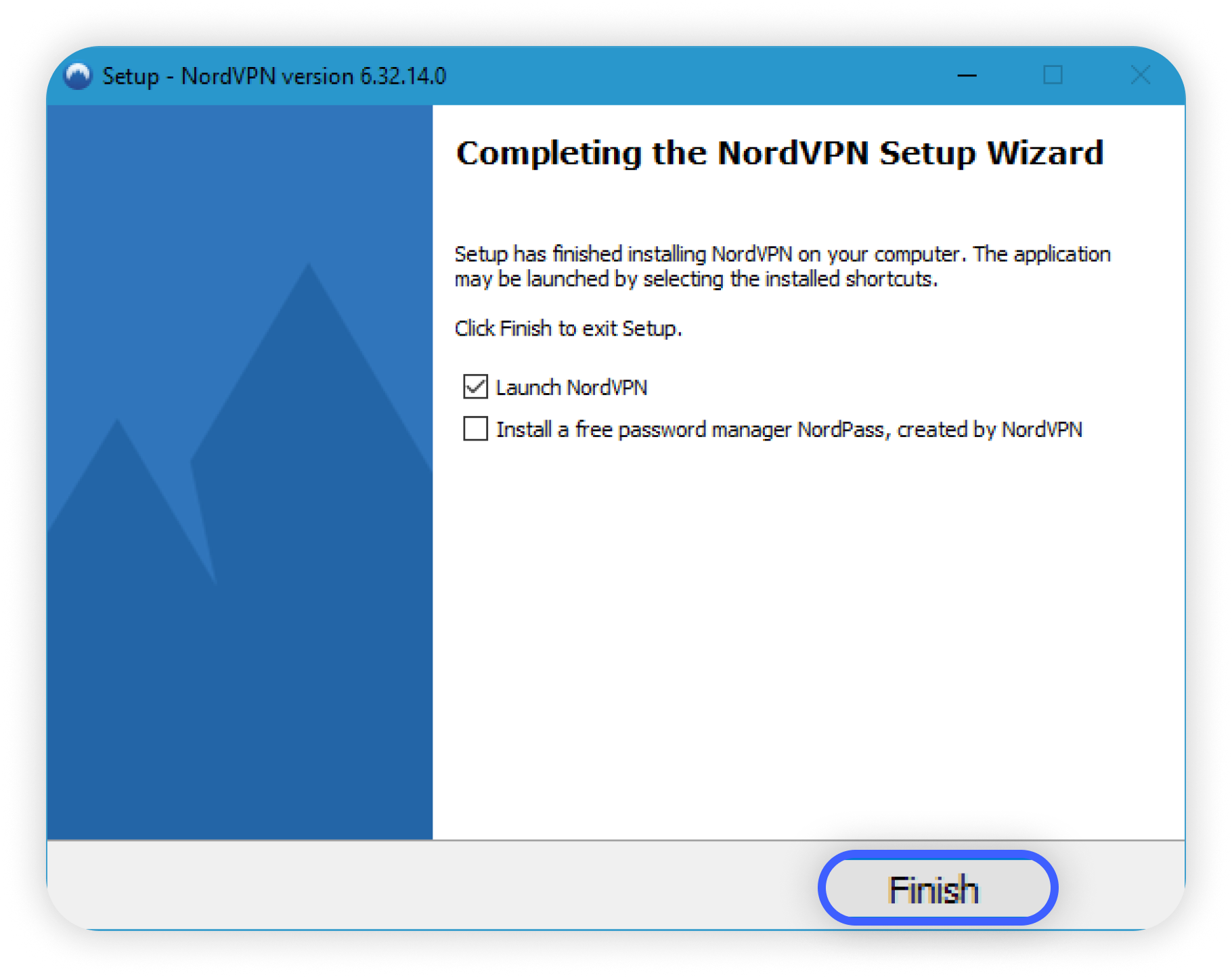 프로그램에서 NordVPN을 즉시 실행할지를 묻습니다.