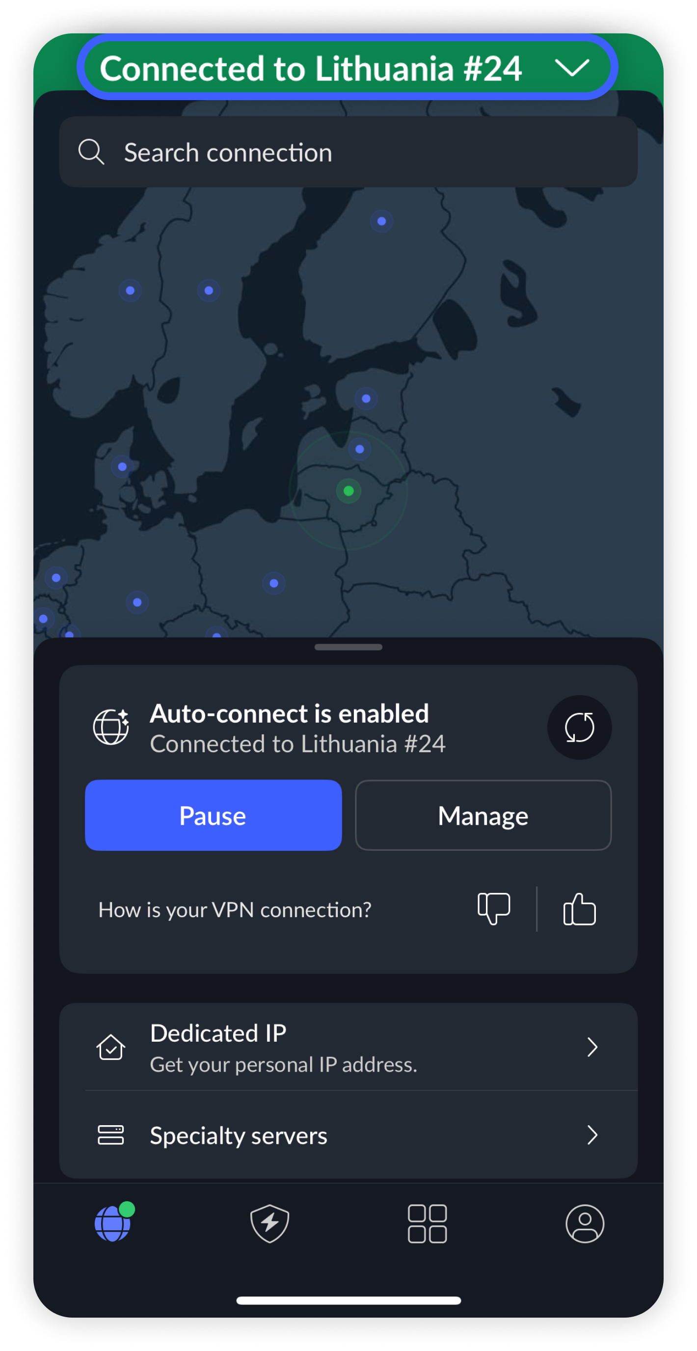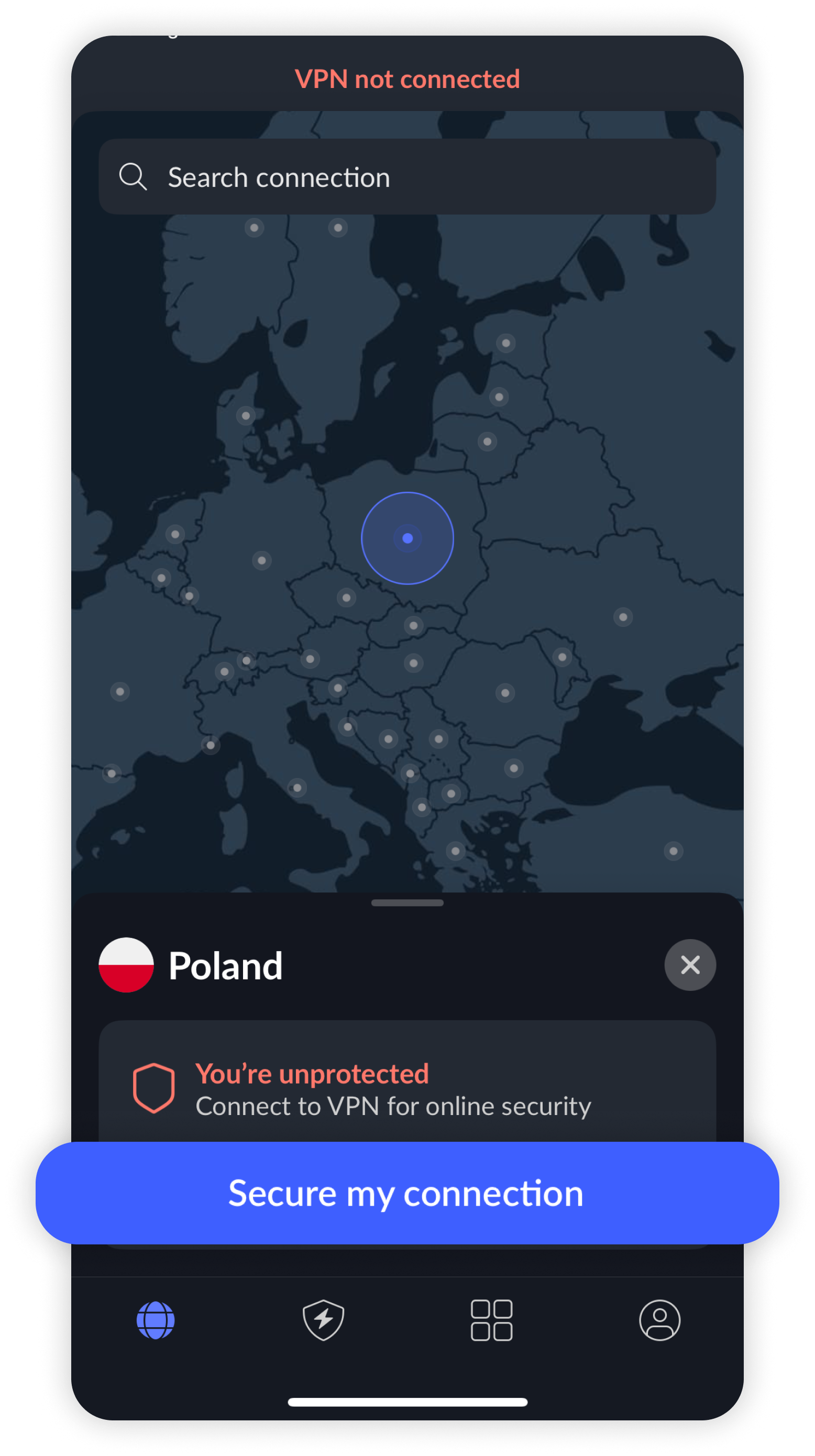 iPhone 또는 iPad에서 NordVPN을 사용하려면, iOS 애플리케이션을 다운로드하고 로그인(또는 가입)한 후, NordVPN 서버에 연결합니다. 장치가 서버에 연결되면, 장치의 인터넷 연결이 비공개로 안전하게 보호됩니다.