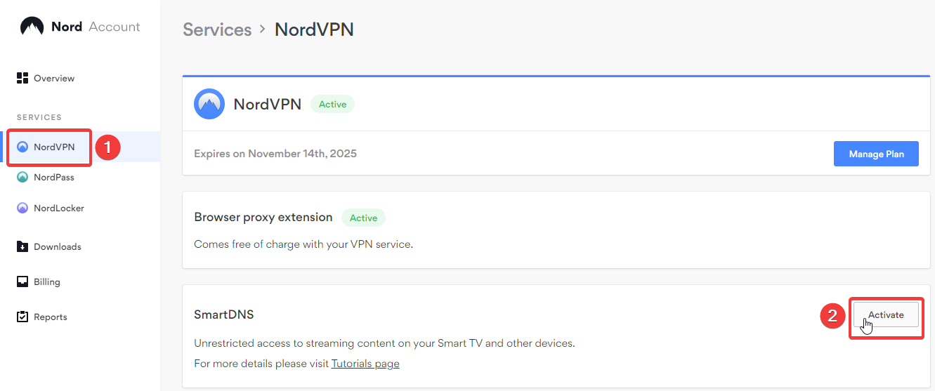 (예: Apple TV가 Wi-Fi_123에 연결된 경우 현재 장치를 동일한 Wi-Fi에 연결하세요.). - 이제, Nord Account를 열고 로그인하세요 . 그 다음, 서비스 섹션에서 NordVPN을 클릭하세요.