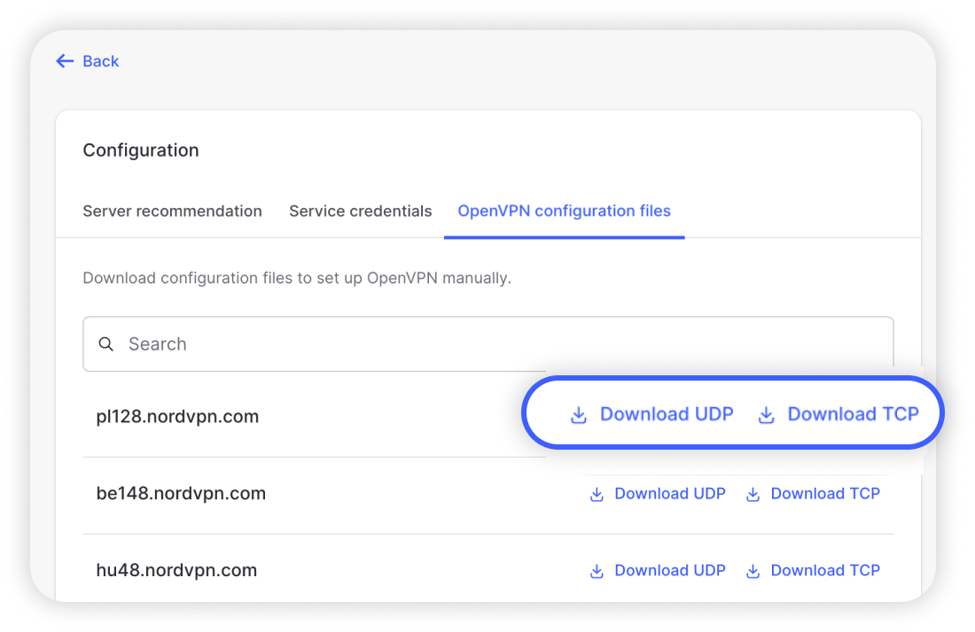 OpenVPN 구성 파일(OpenVPN configuration files)을 선택합니다.