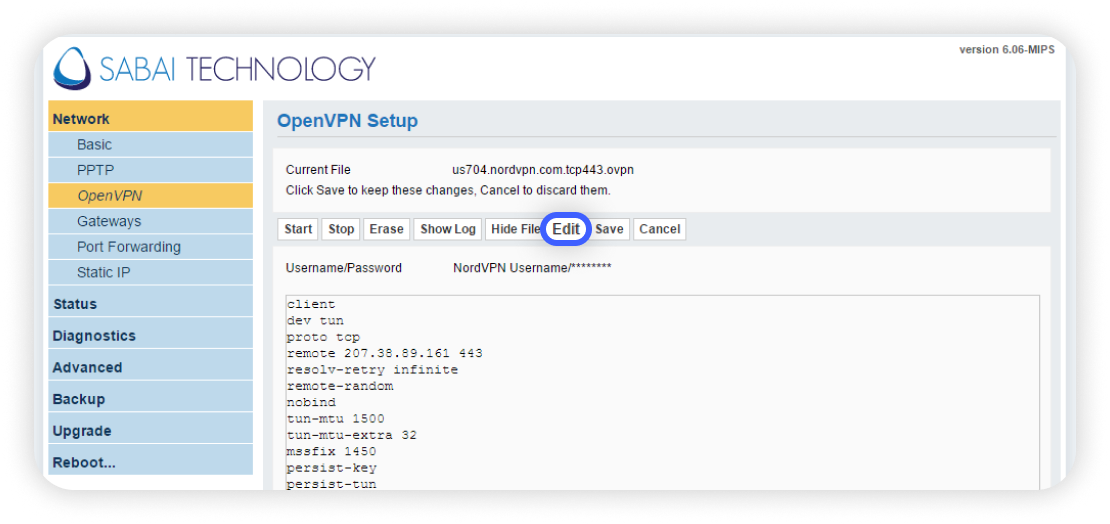 이 튜토리얼에서는 OpenVPN 프로토콜을 사용하여 Sabai 라우터를 NordVPN에 연결하는 방법에 대해 설명합니다.