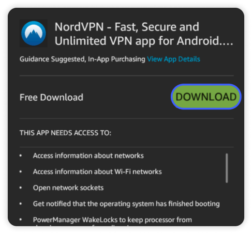 Download en installeer eerst de NordVPN-app op je Amazon-apparaat.
