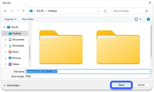 - Je wordt gevraagd om te selecteren waar je de screenshot wilt opslaan.