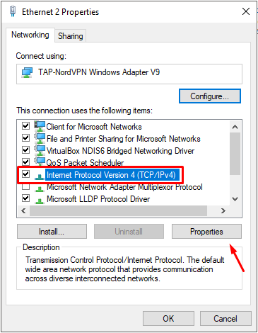 4. Select Internet Protocol Version 4 (TCP/IPv4) and click Properties.