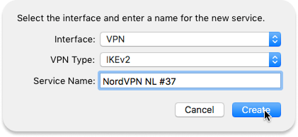 Servicenaam: voer een naam naar keuze in. We raden aan om de service NordVPN (IKEv2) te noemen.