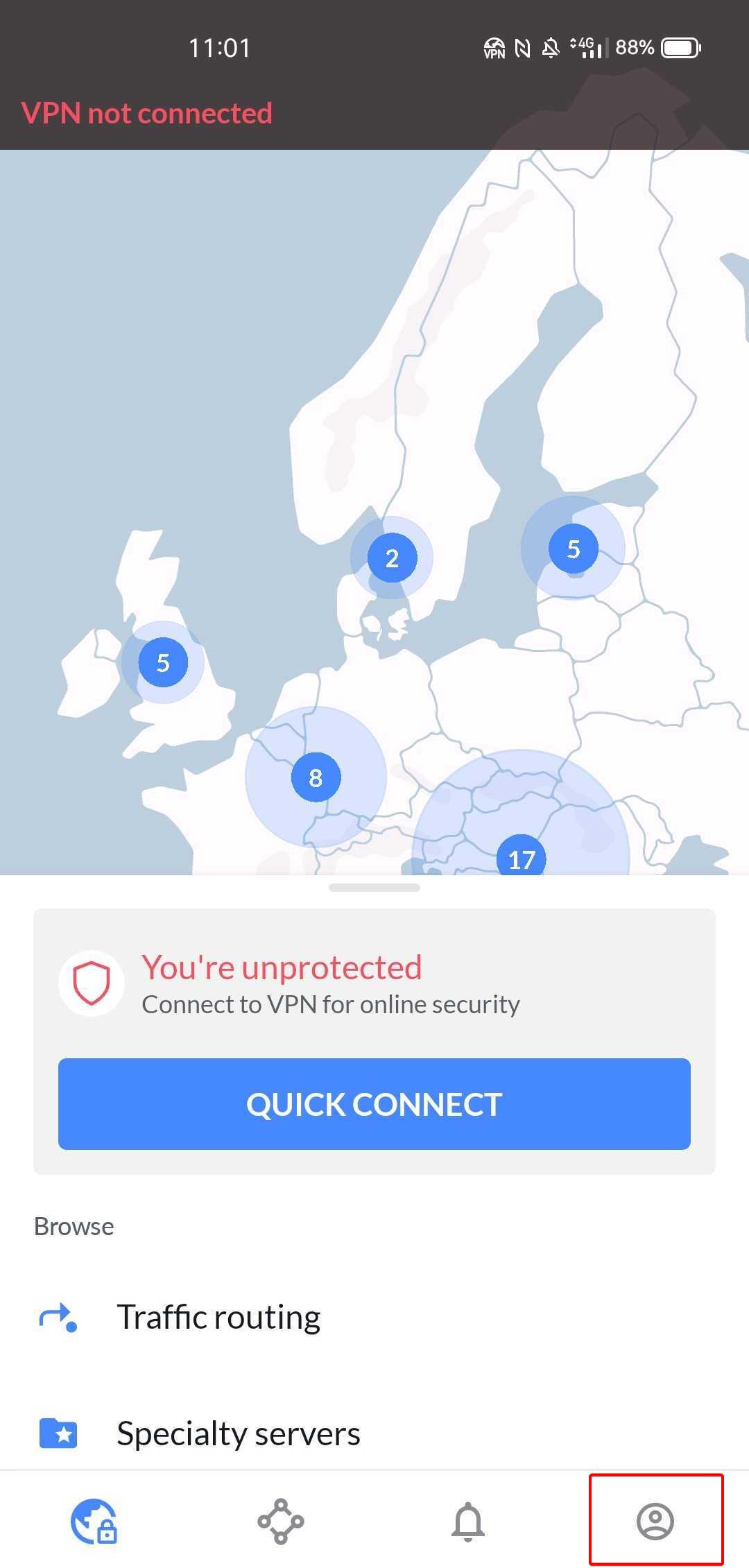 - Selecteer NordLynx en maak verbinding met de VPN: