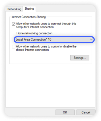 - Vink het vakje Andere netwerkgebruikers toestaan om verbinding te maken via de internetverbinding van deze computer aan.