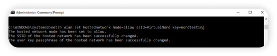 Je zou iets moeten zien wat hierop lijkt:netsh wlan set hostednetwork mode=allow ssid=NetworkName key=NetworkPassword