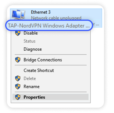- Klik met de rechtermuisknop op de TAP-NordVPN Windows-adapter.