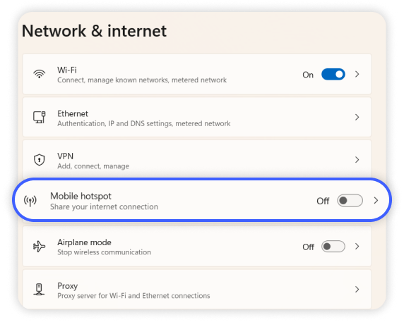 Een NordVPN-verbinding delen via een mobiele hotspot op Windows 10