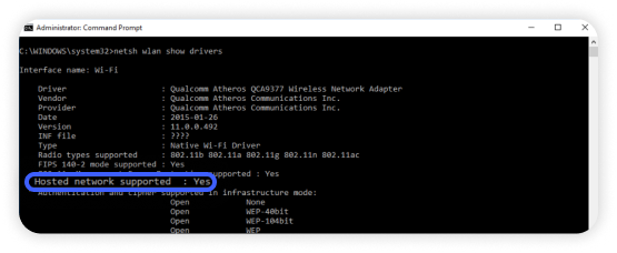 Als de regel Ondersteund netwerk nee aangeeft, moet je naar een nieuwere versie van je stuurprogramma's zoeken en deze installeren.
