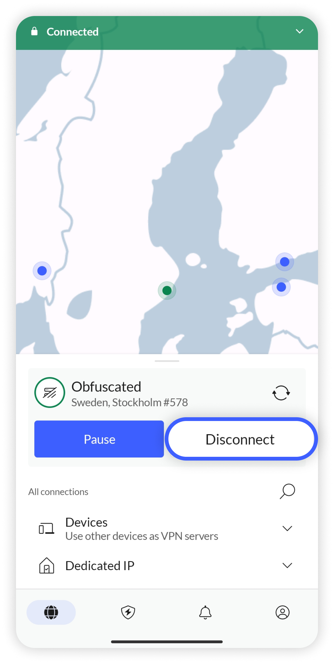 For å deaktivere skjulte servere, bruk denne kommandoen:cnordvpn set obfuscate off