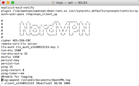 11. You will now need to manually edit the OpenVPN profile on your Synology NAS. To do so you need to SSH as root.