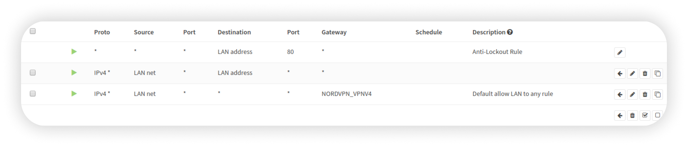Gå til Brannmur (Firewall) -> Regler (Rules) -> LAN og