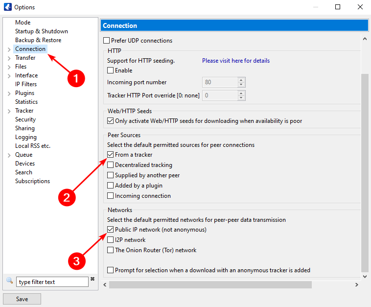- Under Peer sources, make sure only From a tracker is selected.