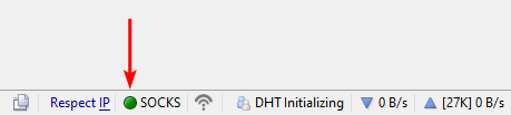 Upon restarting, you should see a green indicator with SOCKS written next to it in the status bar. This indicator shows that the SOCKS5 connection is working properly.