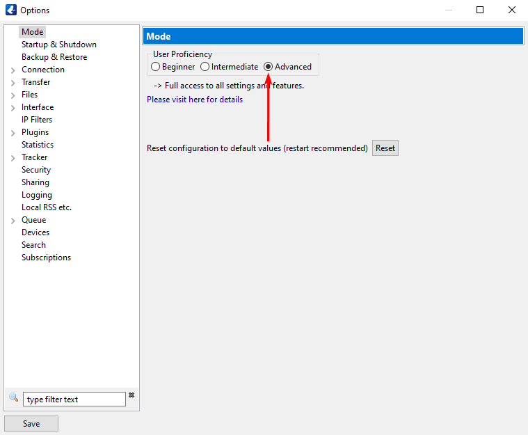 - In the Mode section, select Advanced.