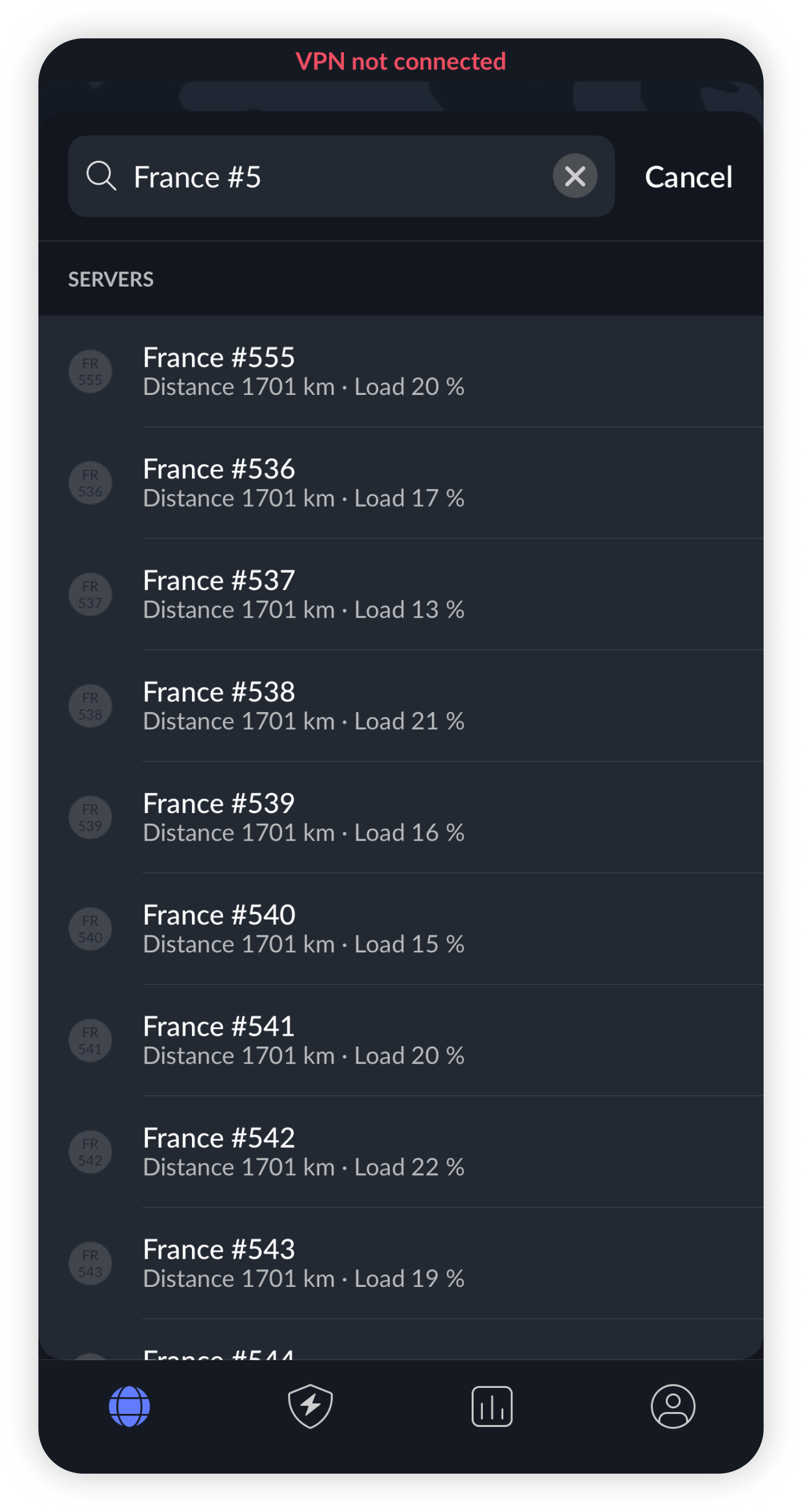 konkretne miasto. NordVPN posortuje dostępne serwery na