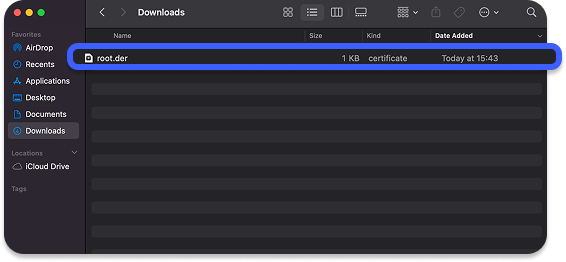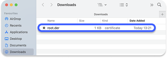 Po pobraniu otwórz plik certyfikatu w folderze Pobrane (Downloads).
