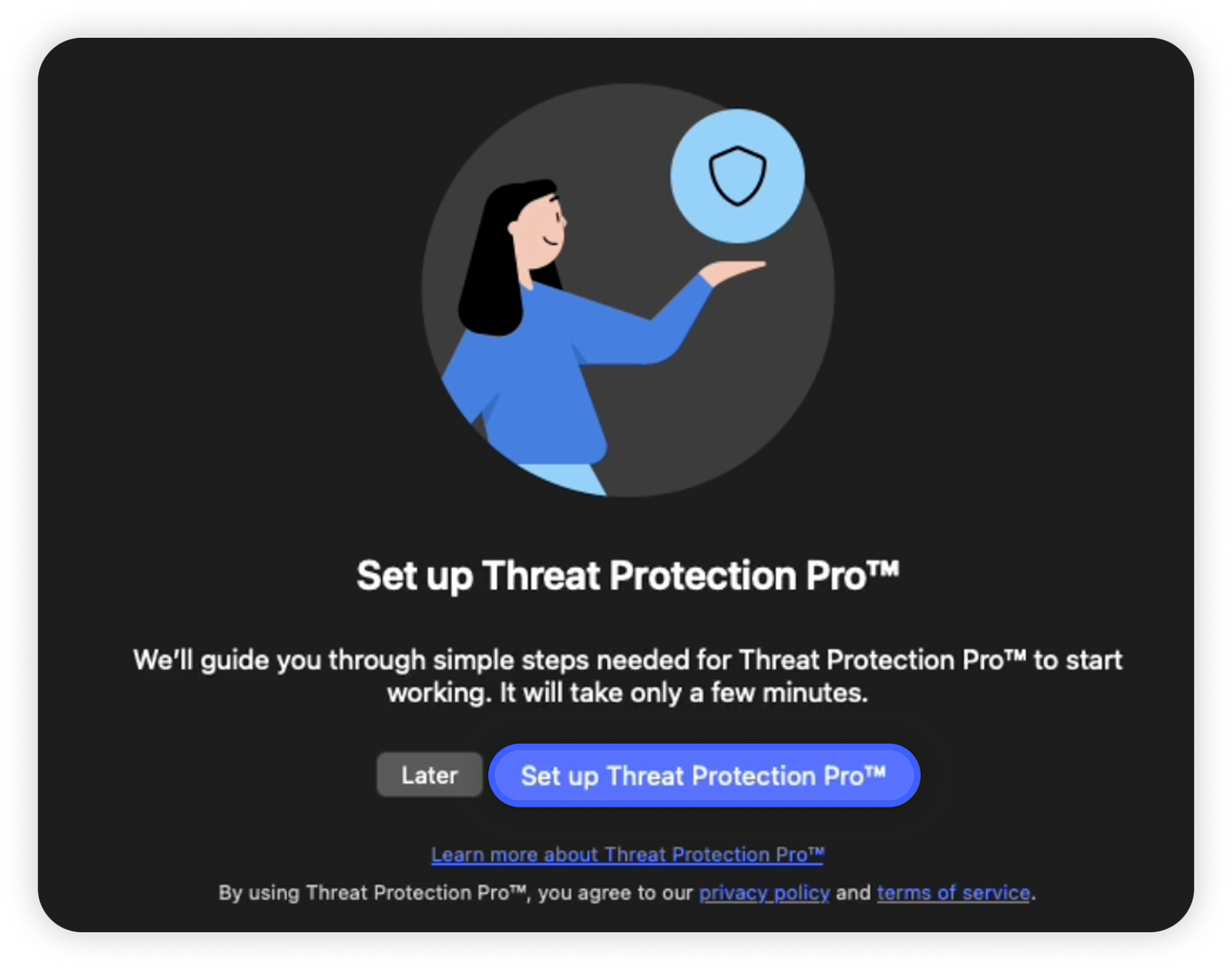 Przeczytaj poniższy poradnik, aby włączyć i używać Threat Protection Pro™ na najnowszych wersjach systemu macOS. Jeśli używasz starszej wersji macOS, sprawdź, jak włączyć Threat Protection Pro™na urządzeniu ze starszą wersją systemu macOS.
