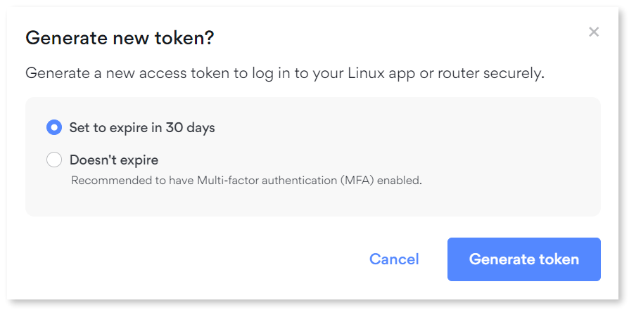 Wybierz token ważny przez 30 dni lub bez daty ważności. Kliknij przycisk