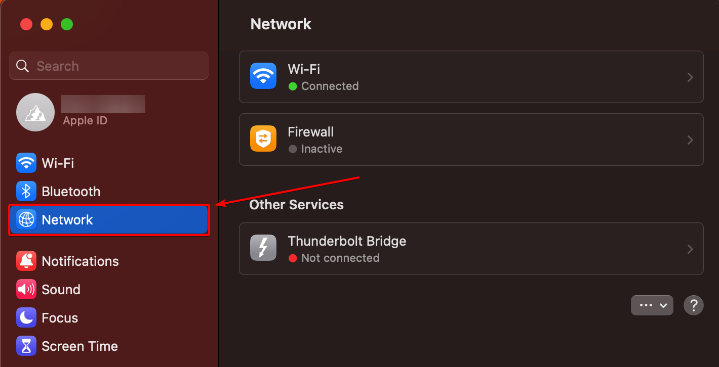 2. Select the network interface you are using (Wi-Fi or Ethernet) and click on Details...