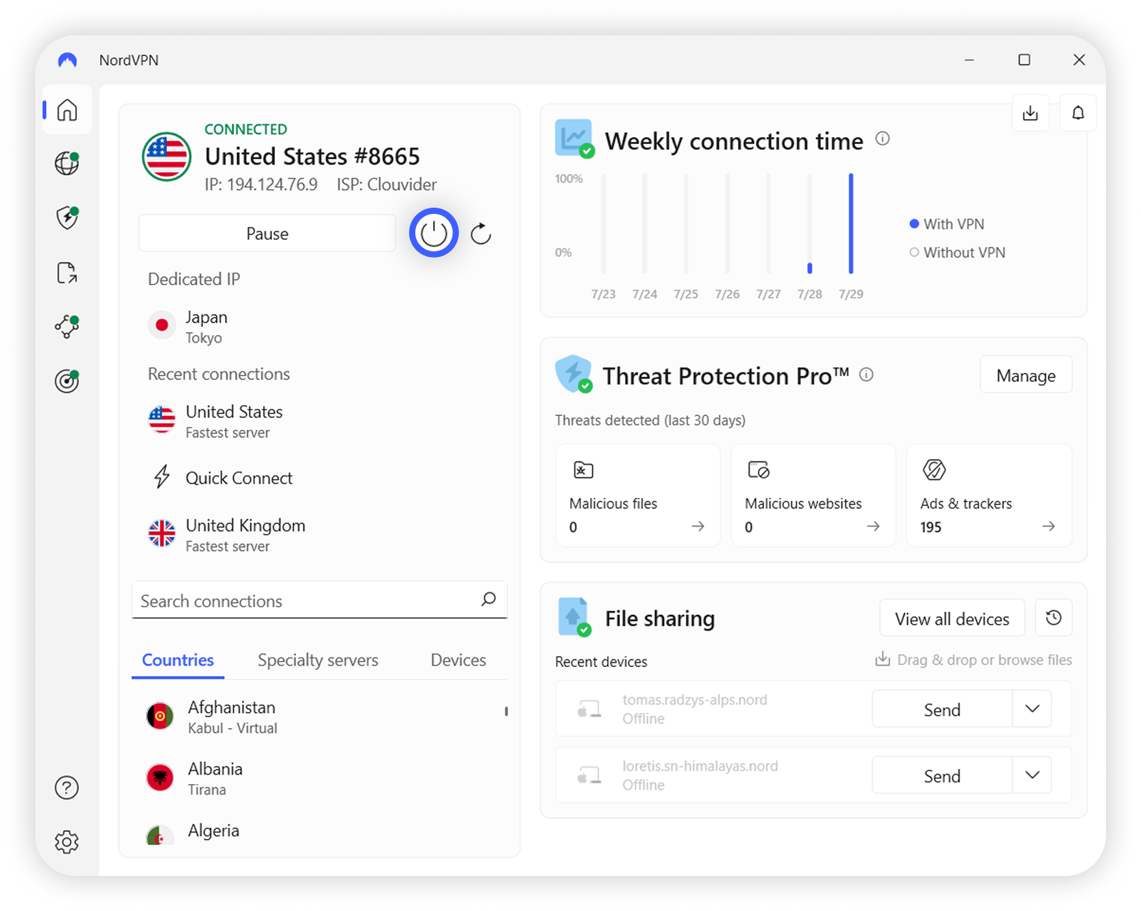 Postępuj zgodnie z instrukcjami poniżej, aby dowiedzieć się, jak rozłączyć się z serwerami NordVPN.