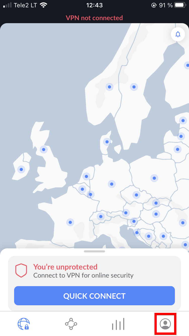 5. Select NordLynx and connect to VPN.