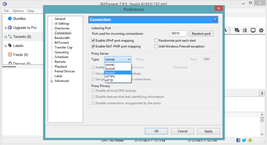 Teraz BitTorrent bezpiecznie pobiera pliki przez wybrany przez Ciebie serwer proxy SOCKS5 z oferty NordVPN.