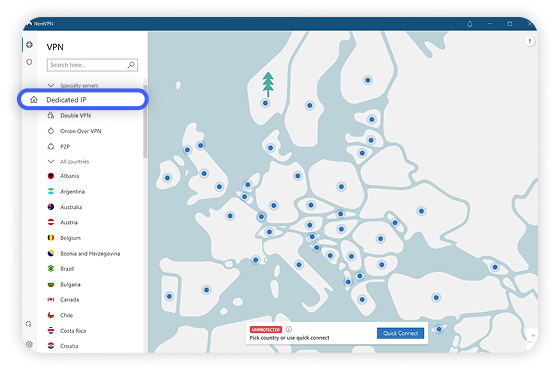 Następnie możesz połączyć się z dedykowanym adresem IP w aplikacji NordVPN w systemie:
