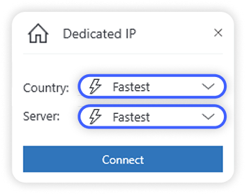 - Wybierz Najszybszy (Fastest) dla kraju i serwera, a następnie kliknij Połącz (Connect):