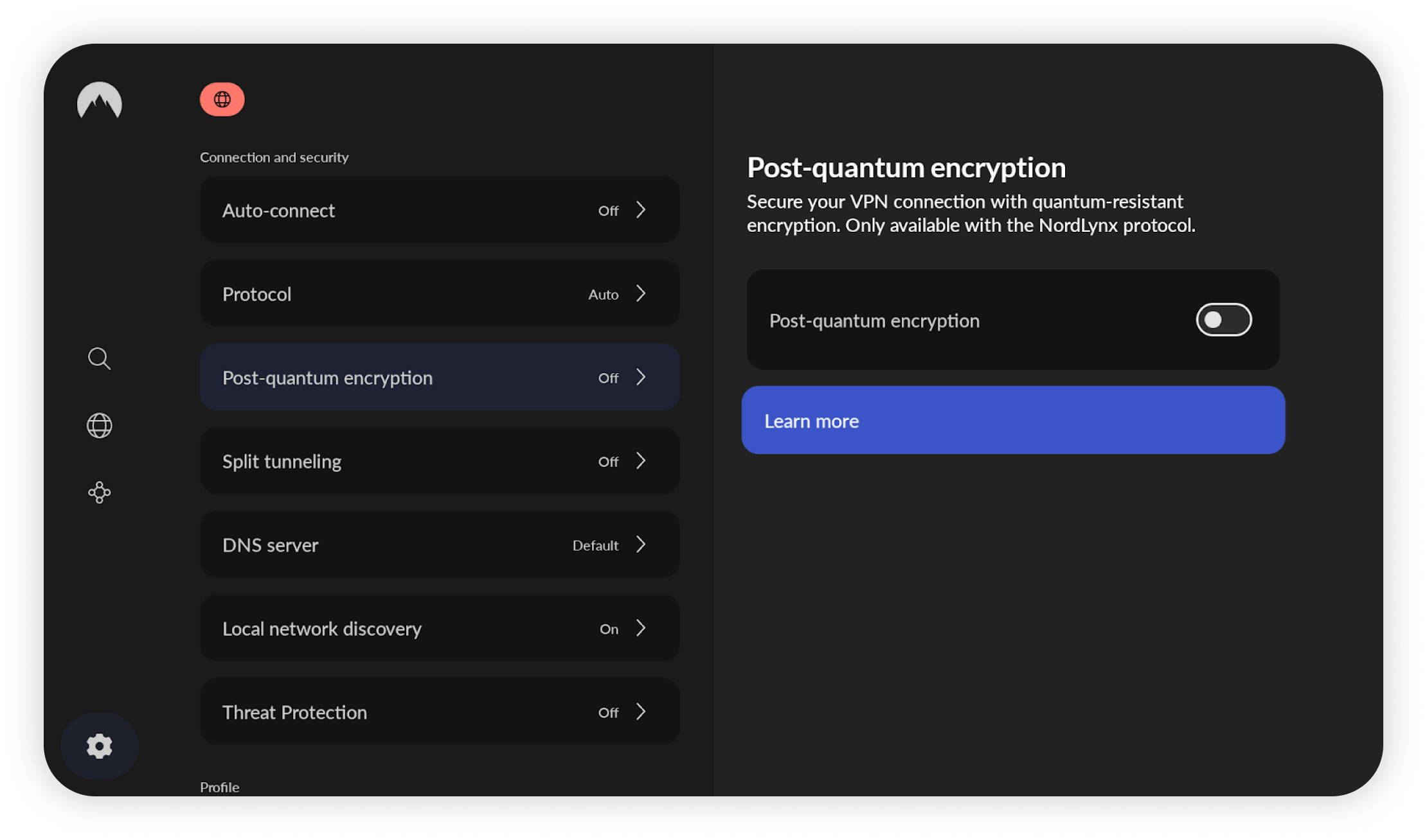 O recurso de criptografia pós-quântica permite proteger sua conexão de VPN contra invasores que usam computadores quânticos.